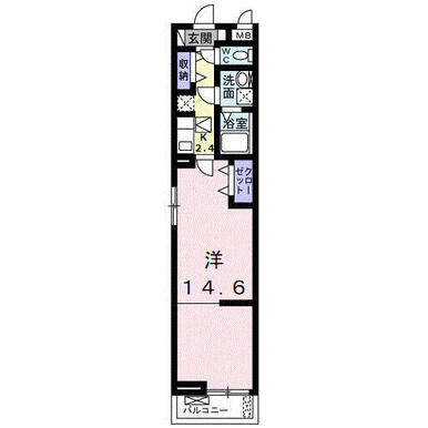 | 間取り | 1K(洋14.6・K2.4) | 主要採光面 | - |