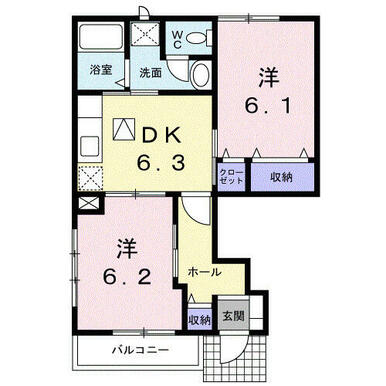 | 間取り | 2DK(洋6.2・洋6.1・DK6.3) | 主要採光面 | - |