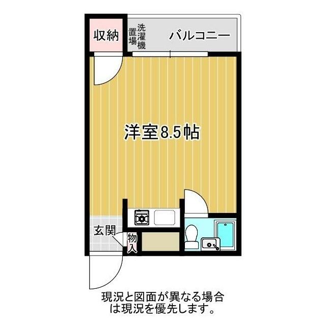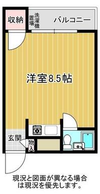 | 間取り | ワンルーム(洋室8.5) | 主要採光面 | 南 |